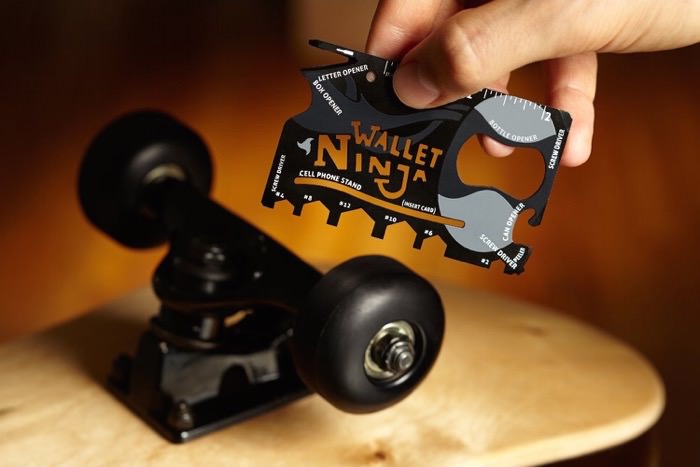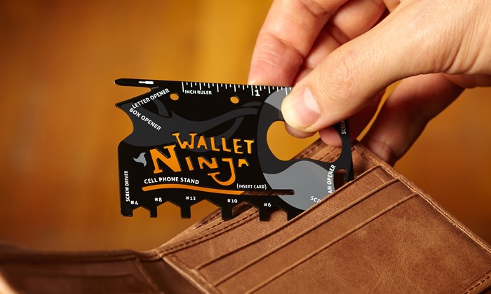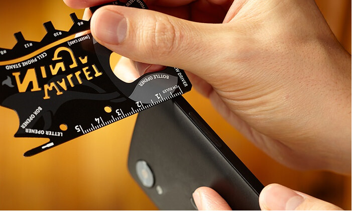 Ob Brief-, Flaschen oder Dosenöffner, Schraubenschlüssel, Smartphoneständer, Fruchtschäler oder Lineal. Mit diesem äusserst stabilen Multifunktionstool hast du 16 verschiedene Funktionen immer dabei. Und der "Wallet Ninja" ist gerade mal so gross wie eine Kreditkarte.