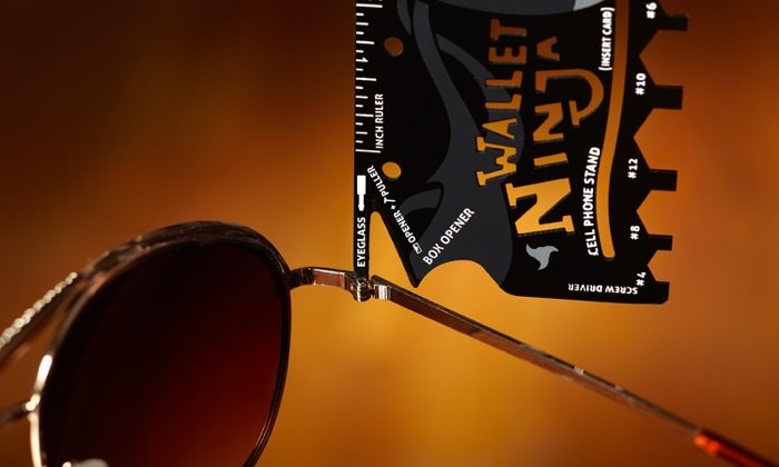 Wer kennt das nicht? Unterwegs löst sich auf ein Mal die Schraube der Sonnenbrille. Gut, wenn man da den "Wallet Ninja" dabei hat und die Schraube wieder anziehen kann. Zu den Schraubendreher gehören Phillips, flach und Robertson.